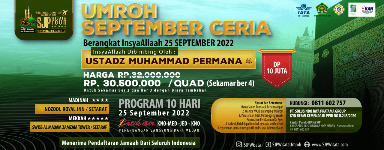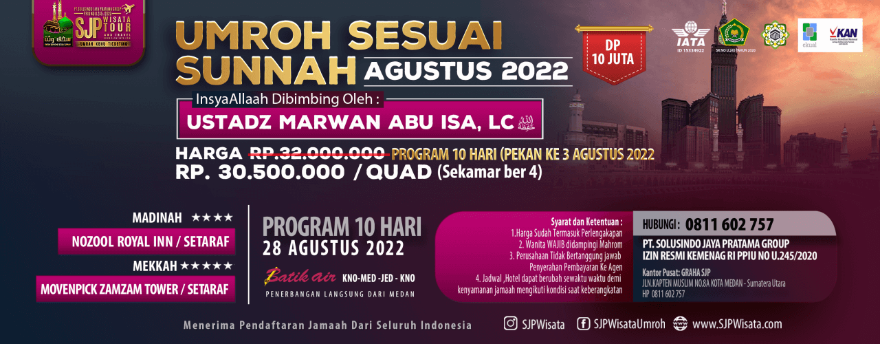 PT. SOLUSINDO JAYA PRATAMA GROUP [ SJP WISATA ] adalah travel Umrah & Haji Sesuai Sunnah