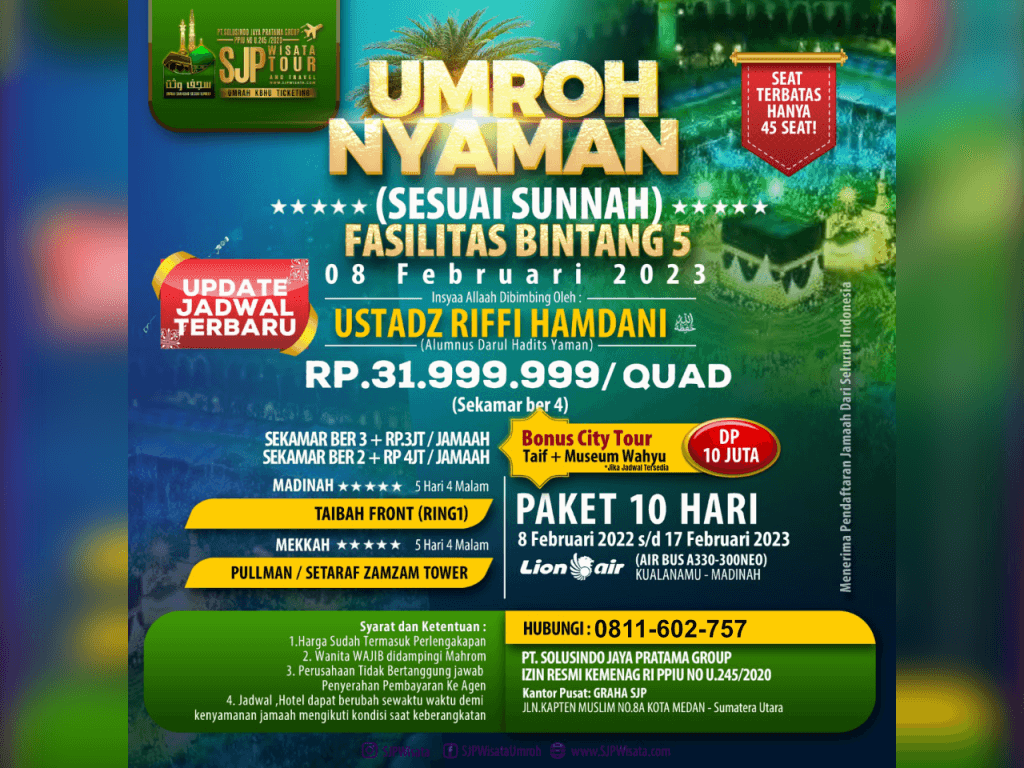 UMRAH NYAMAN SESUAI SUNNAH FASILITAS BINTANG 5 BERSAMA USTADZ RIFFI HAMDANI