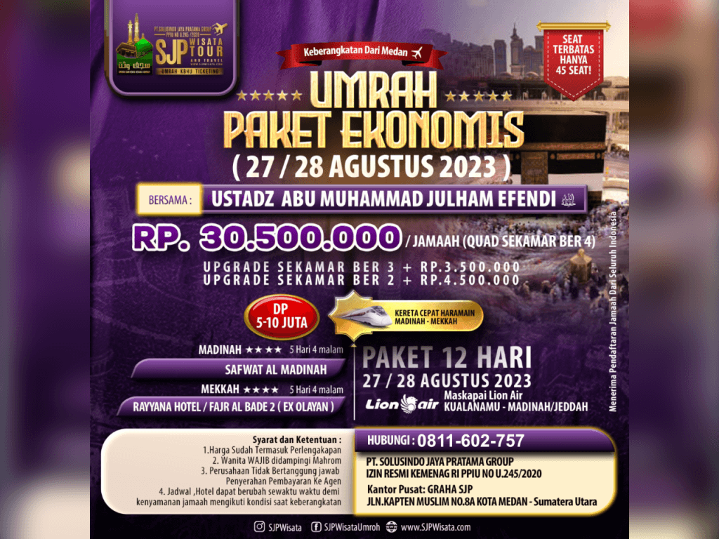 UMRAH PAKET EKONOMIS BERSAMA USTADZ ABU MUHAMMAD JULHAM EFENDI