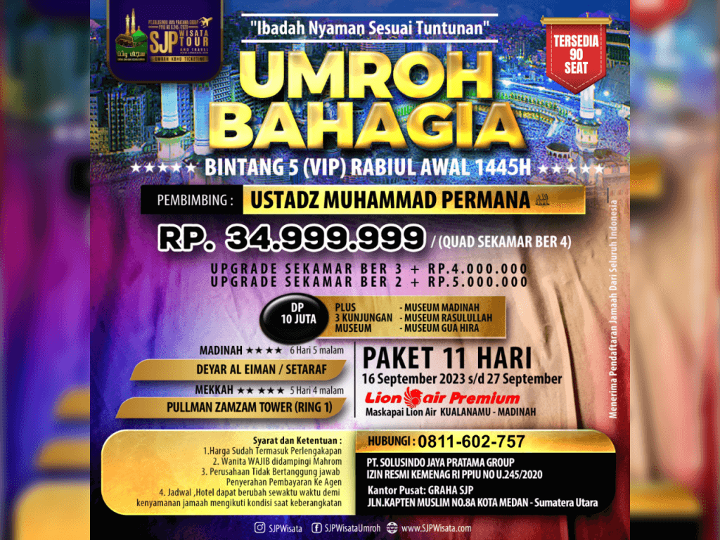 UMRAH BAHAGIA BINTANG 5 (VIP) BERSAMA USTADZ MUHAMMAD PERMANA