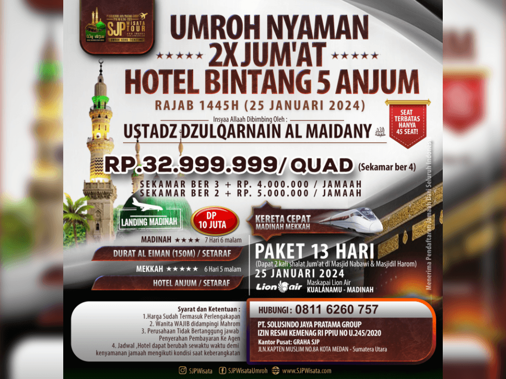 UMRAH NYAMAN 2X JUM'AT HOTEL BINTANG 5 ANJUM