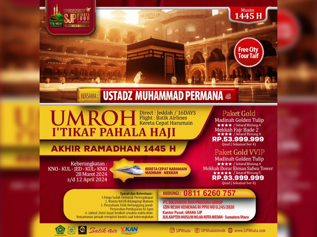 - Penggantian tanggal / program perjalanan bisa dilakukan maksimal 30 hari sebelum tanggal keberangkatan.