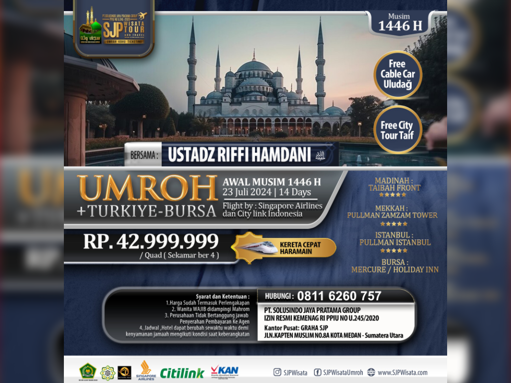 - Penggantian tanggal / program perjalanan bisa dilakukan maksimal 30 hari sebelum tanggal keberangkatan.