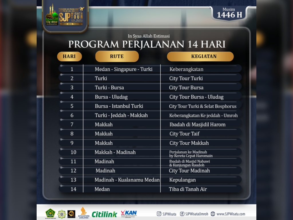 - 30 hari sebelum tanggal keberangkatan, dikenakan biaya pembatalan sebesar 25% dari harga paket.
