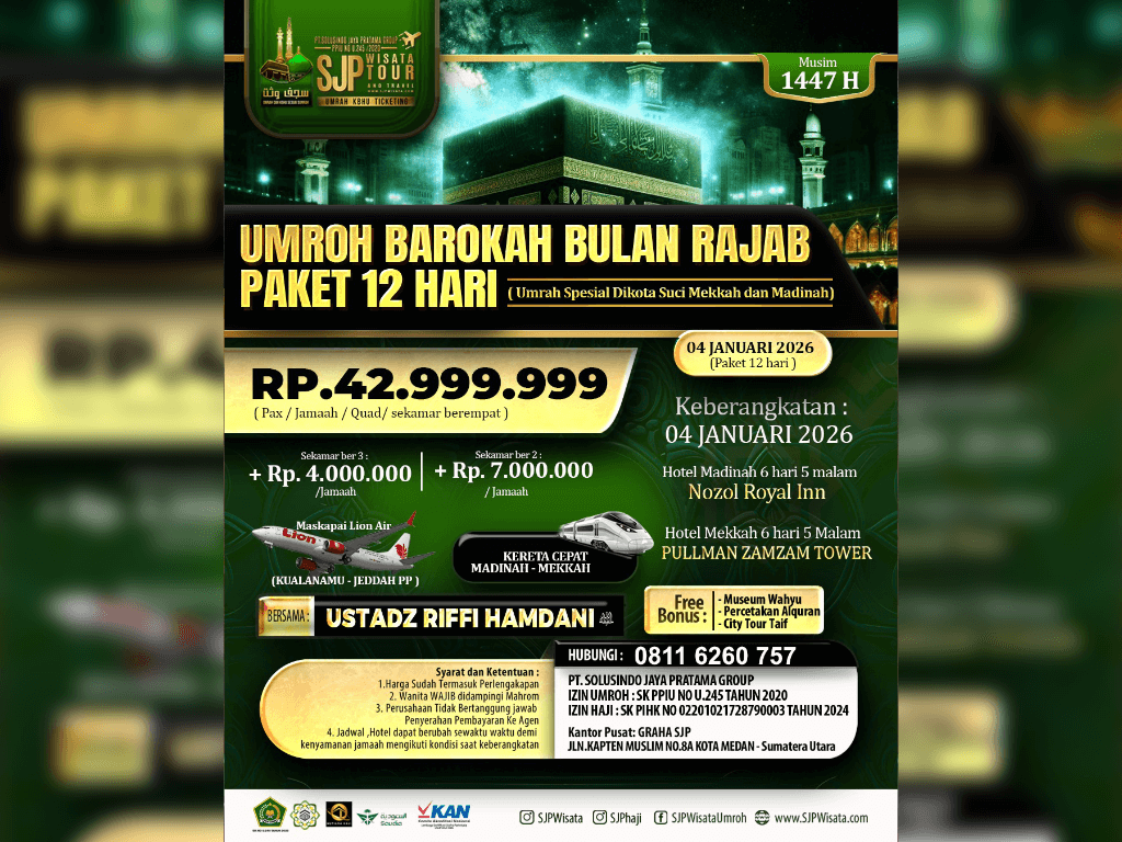 - Akta lahir & kartu keluarga bagi yang membawa anak dan memerlukan surat muhrim.